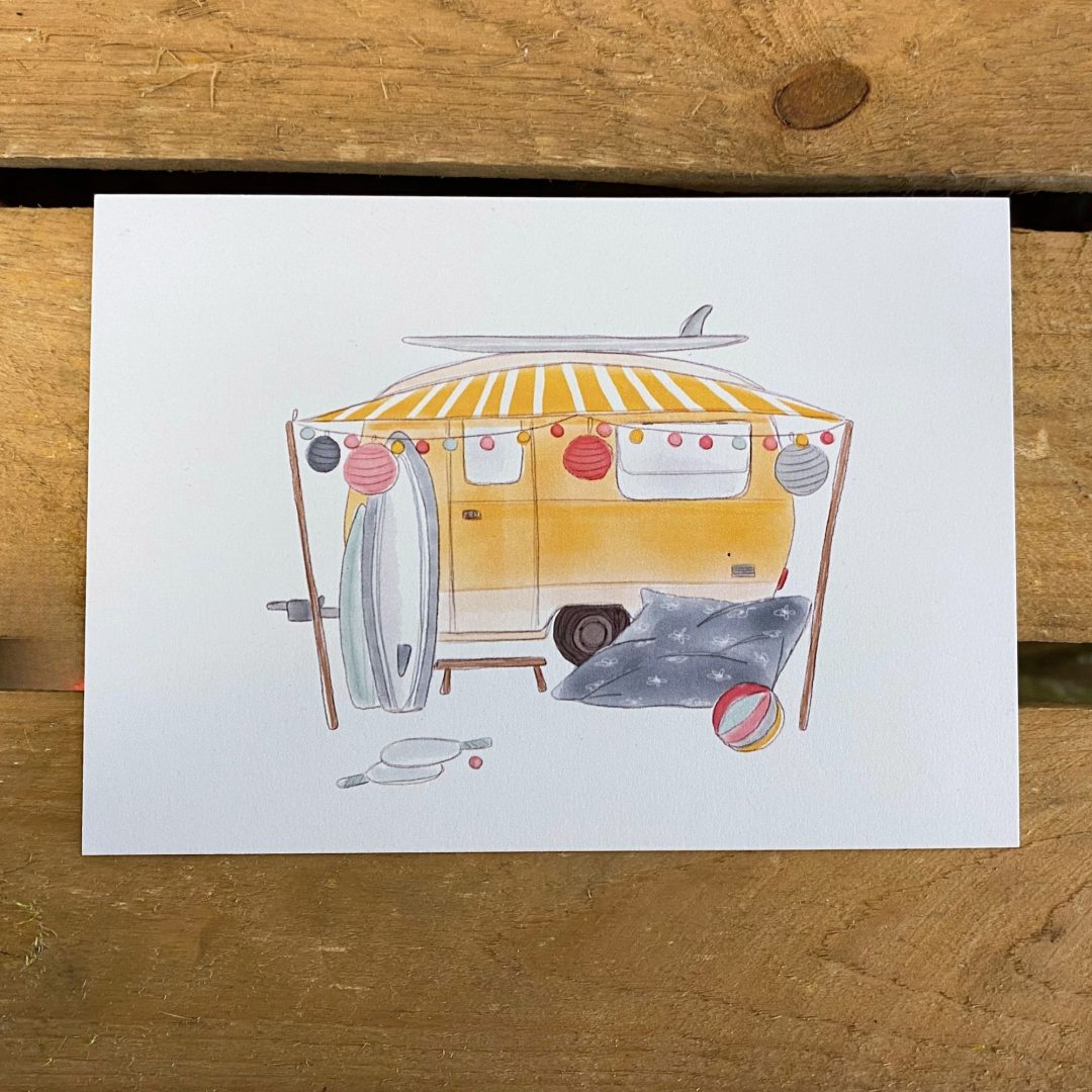 Ansichtkaart gele zomerse caravan - Stationery Store