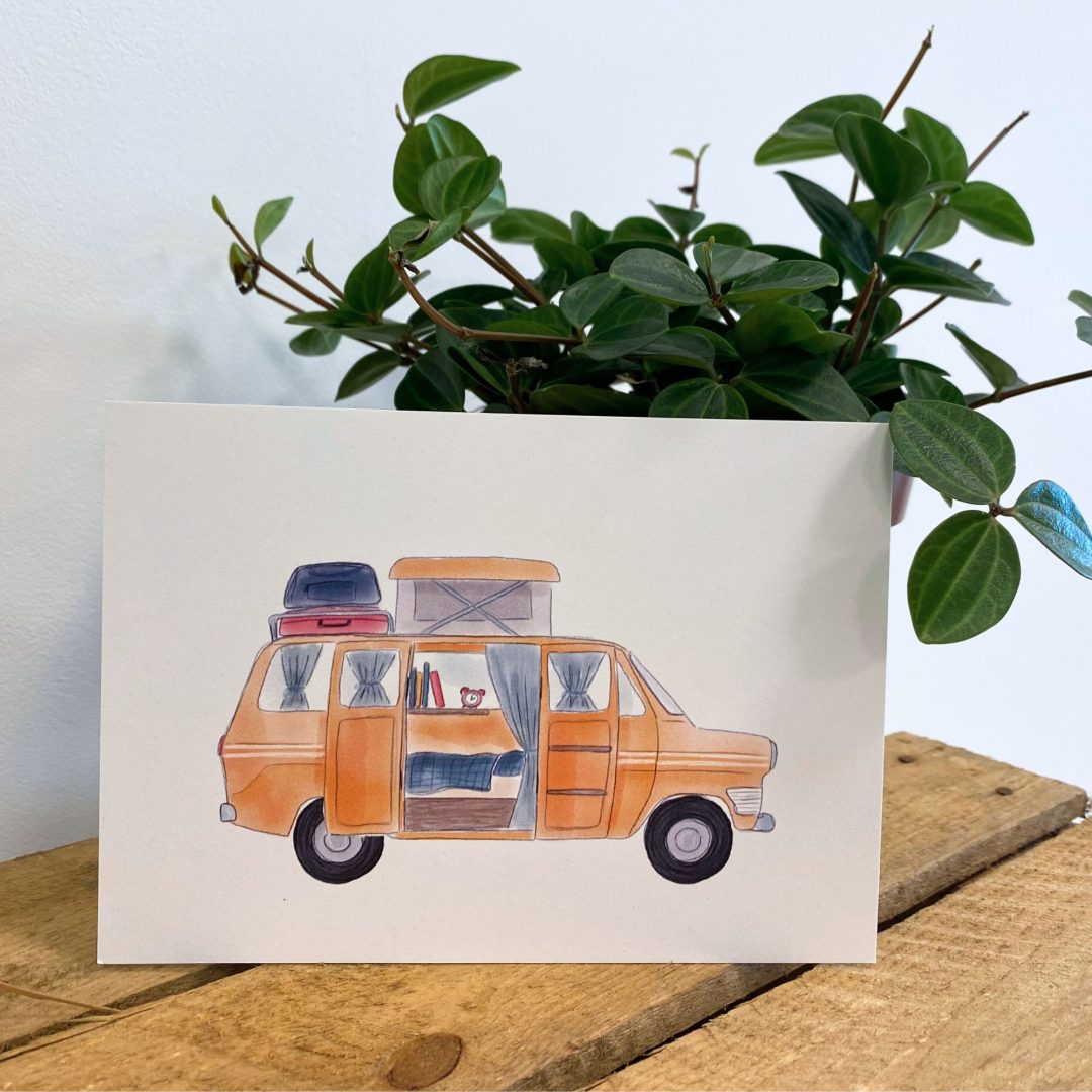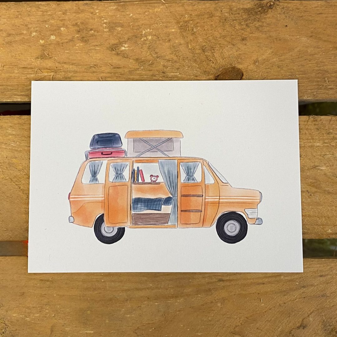 Een vrolijk oranje busje! Een mooie kaart voor die ene lieve kampeerliefhebber. Een A6 formaat kaart in mooie kwaliteit. De kaart is geïllustreerd door Pauline Baartmans van Stationery Store. Er zijn totaal vier kaarten in dezelfde tekenstijl. Deze zijn samen leuk te combineren met de bijpassende kalender.