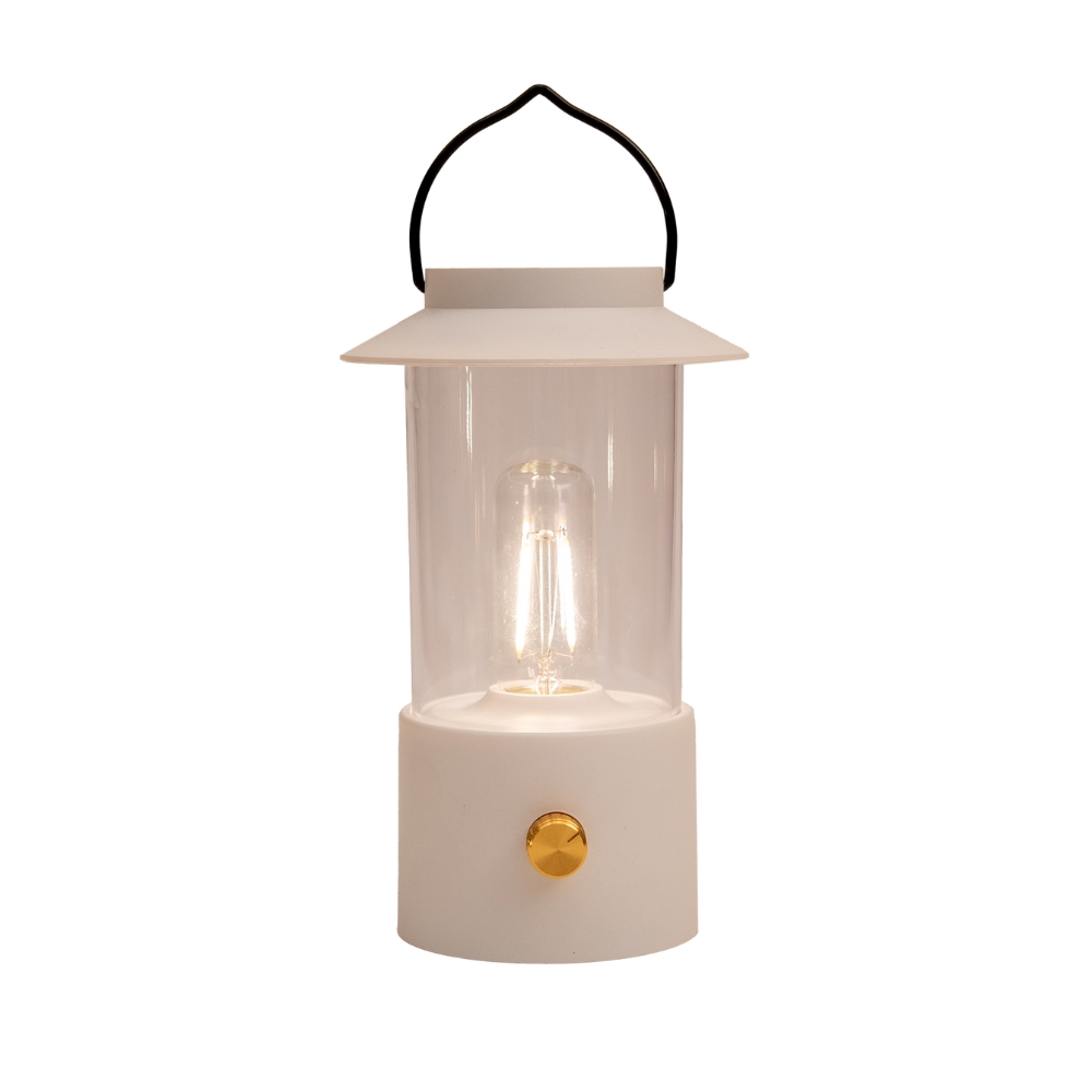 Sfeervol licht, precies waar je het wilt. Deze oplaadbare campinglamp in het wit met goudkleurige details geeft je onder de luifel meteen die warme, gezellige uitstraling. Met de dimbare bediening pas je de lichtsterkte aan van zacht avondlicht tot prettig leeslicht. Omdat ’ie oplaadbaar is, neem je ‘m gemakkelijk mee over de camping, geen gedoe met batterijen. De lamp is 9 x 24 centimeter.