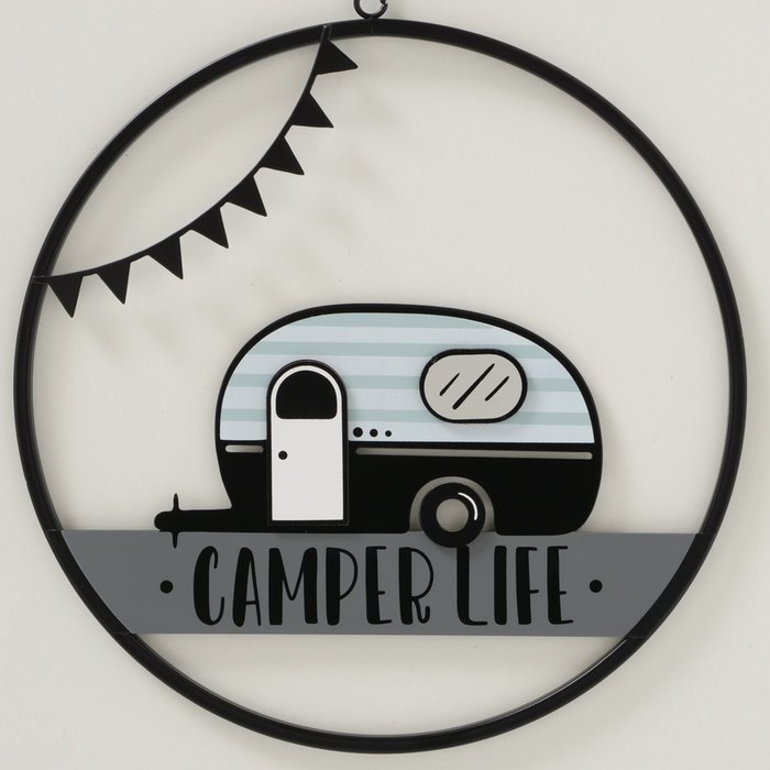 Deze metalen decohanger met een gezellige caravan en de tekst “Camper Life” is perfect voor aan de wand in je caravan, voortent of gewoon thuis. Het ronde design heeft een zwarte afwerking. . Met de bijgeleverde ketting hang je ’m makkelijk op. Dit is variant grijs, ook in wit verkrijgbaar.