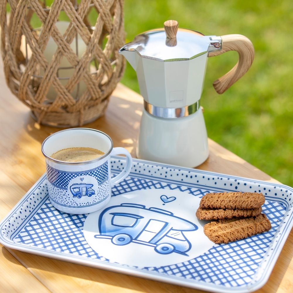 • Blauwe camperprint; matcht met de SVR emaille campermokken en servies
