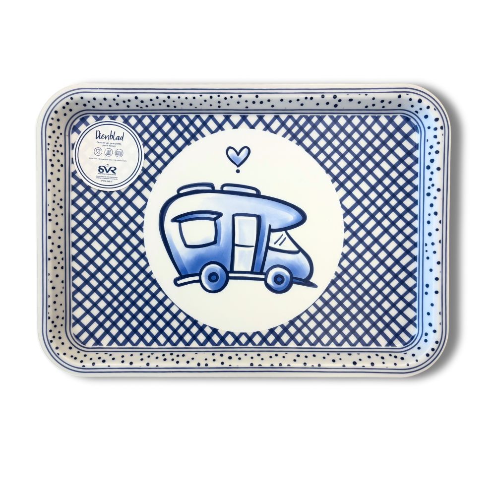 Tijd voor koffie of een borrel? Met dit compacte SVR-dienblad loop je zó naar buiten. Vrolijk, mooie kwaliteit en handig! De herkenbare blauwe camperprint past perfect bij de emaille mokken en het overige SVR-servies en brengt meteen die campingsfeer aan tafel. Gemaakt van gerecyclede plastic flessen (PET): licht in gebruik, stevig in de hand en natuurlijk voedselveilig. Het formaat is perfect voor ontbijtjes, borrelhapjes of een snelle koffieronde—op de camping én thuis.