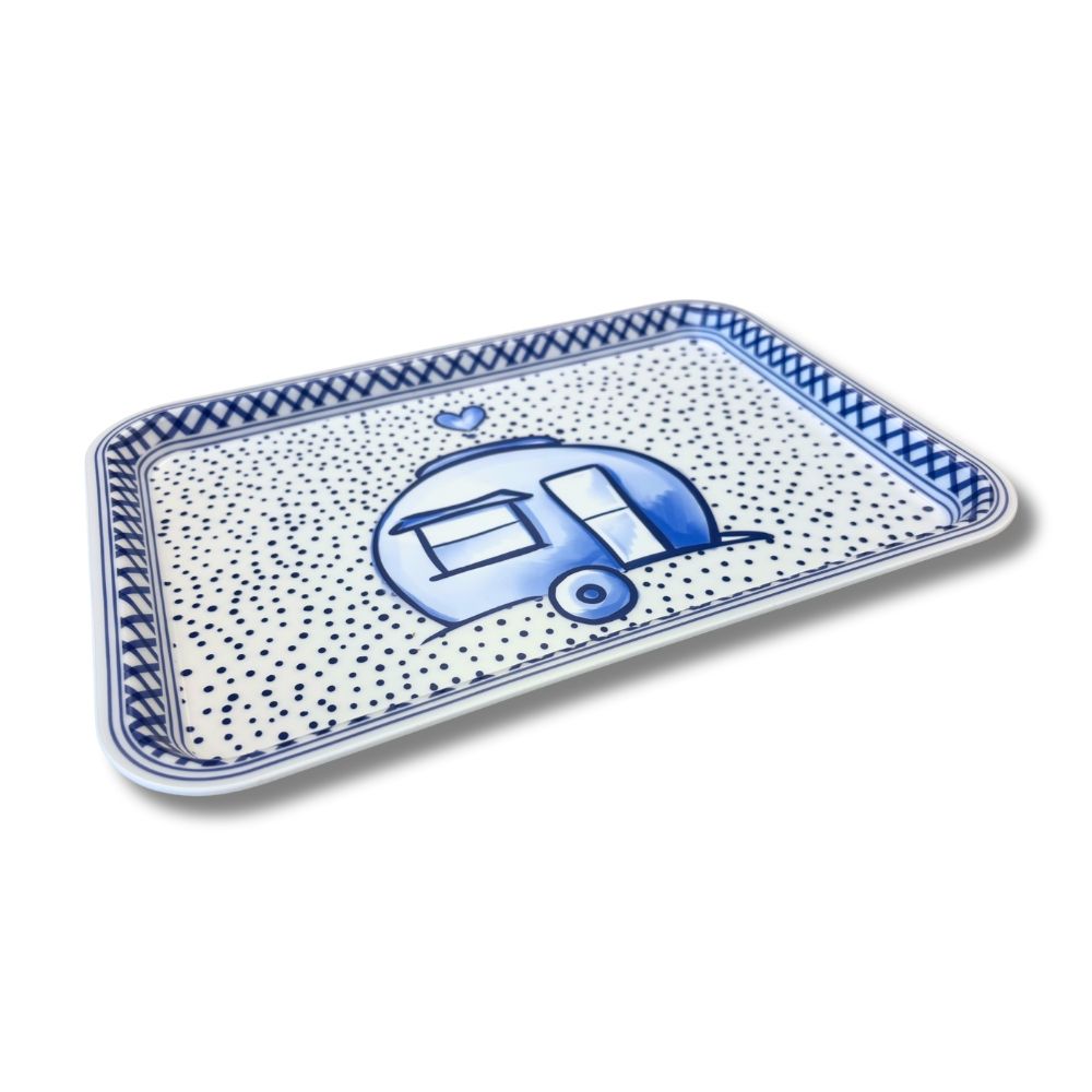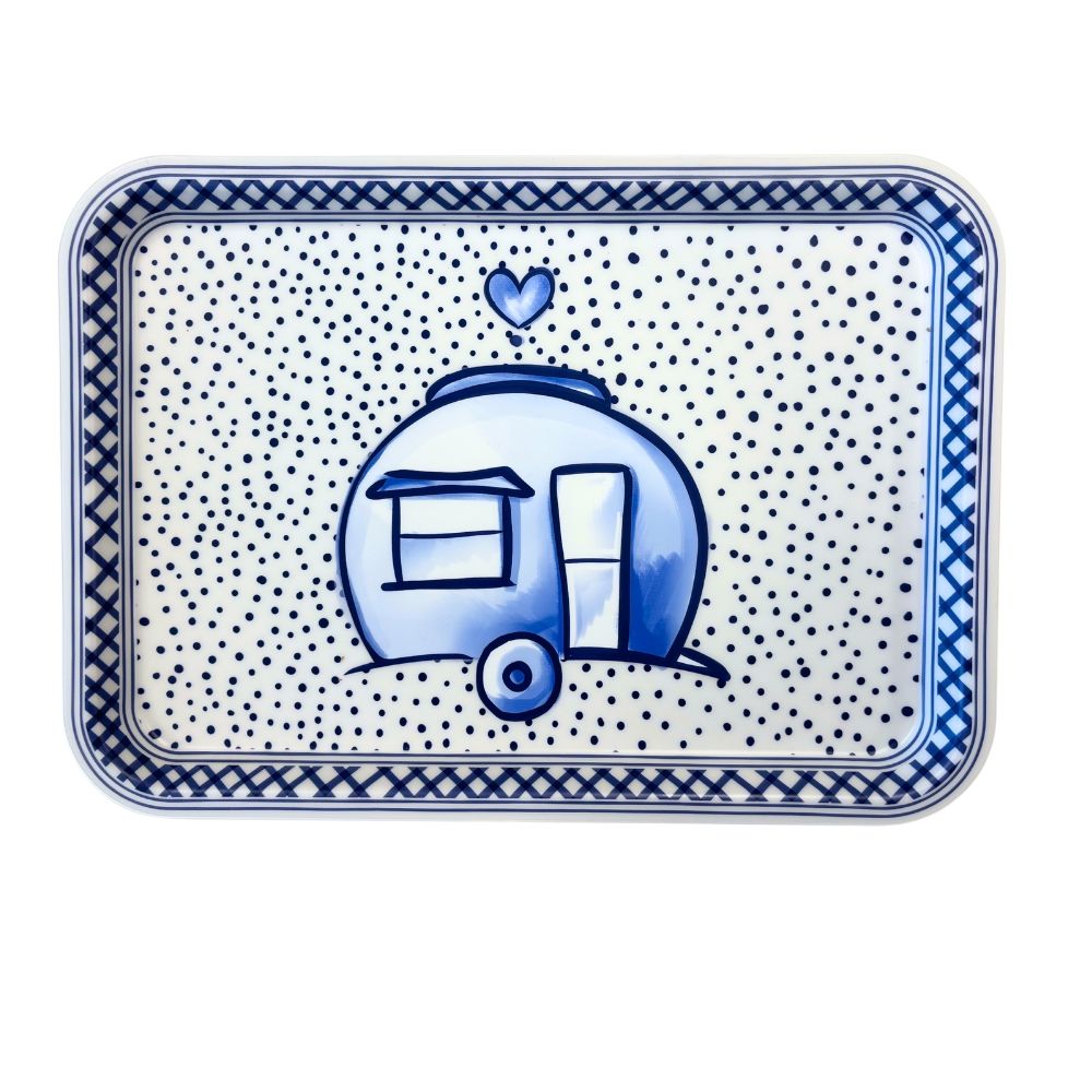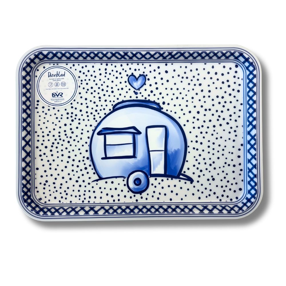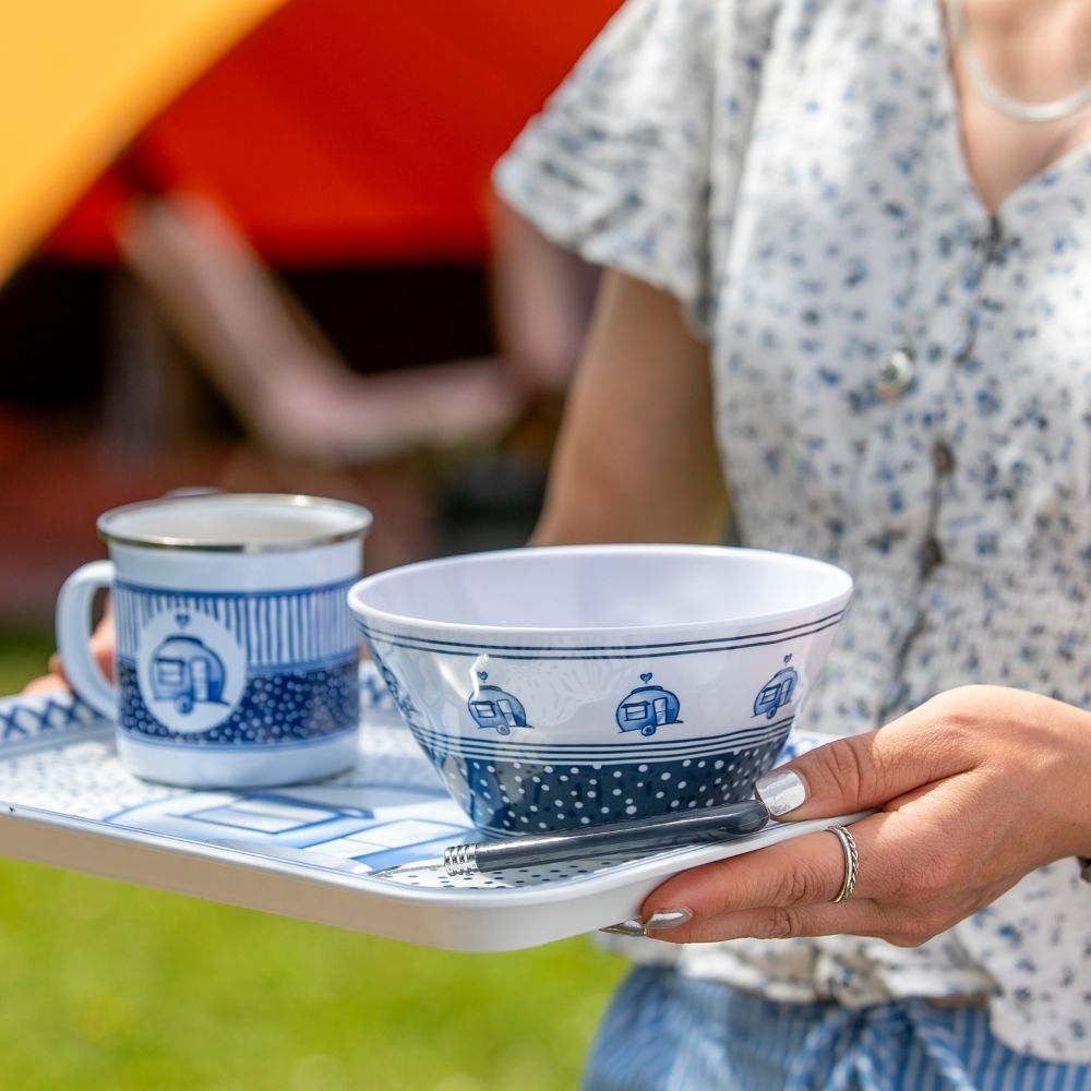 Dauw op het gras, zon op de luifel, tijd voor koffie of wat anders lekkers! Op dit compacte SVR-dienblad serveer je moeiteloos drankjes en hapjes. De bekende blauwe caravanprint matcht perfect met het SVR-servies en brengt meteen kampeersfeer aan tafel. Gemaakt van gerecyclede plastic flessen (PET): licht, stevig en natuurlijk voedselveilig. Het formaat is ideaal voor ontbijtjes, borrelhapjes of een snelle koffieronde, op de camping én thuis.