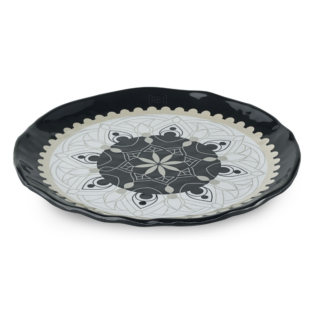 Een dinerbord dat gezien mag worden. Het Rebel-Outdoor dinerbord van 27 cm in stijlvol zwart is gemaakt van mooie kwaliteit melamine: sterk, licht en degelijk. De grafische print met beige details en subtiel reliëf geeft het bord een moderne, stoere uitstraling. Perfect voor de campingtafel, maar net zo goed voor een etentje in de tuin of gewoon thuis.