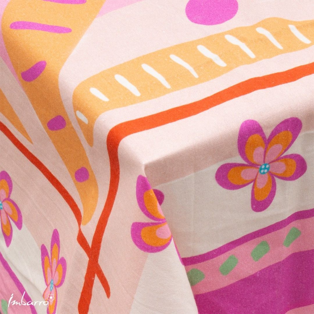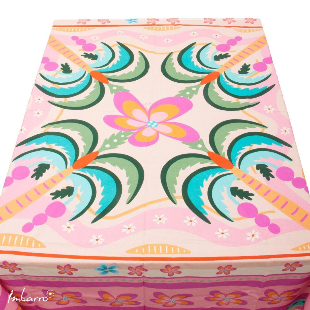 Met dit luxe tafelkleed van Imbarro maak je van elke tafel een echte blikvanger. De kleurrijke print met palmbomen en bloemen zorgt voor een zomerse, ontspannen sfeer. Perfect voor als jij van kleur onder de luifel houdt! Dit tafelkleed geeft direct kleur aan jouw campingplekje. Lekker groot voor op je campingtafel: 150 x 240 cm. Mooi te combineren met andere kleurrijke accessoires en natuurlijk met de overige producten uit de Vista collectie voor een compleet en sfeervol geheel.