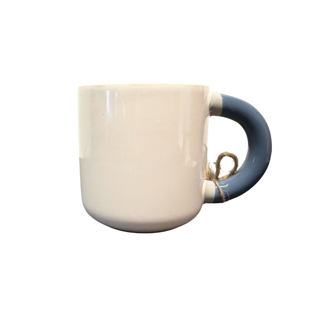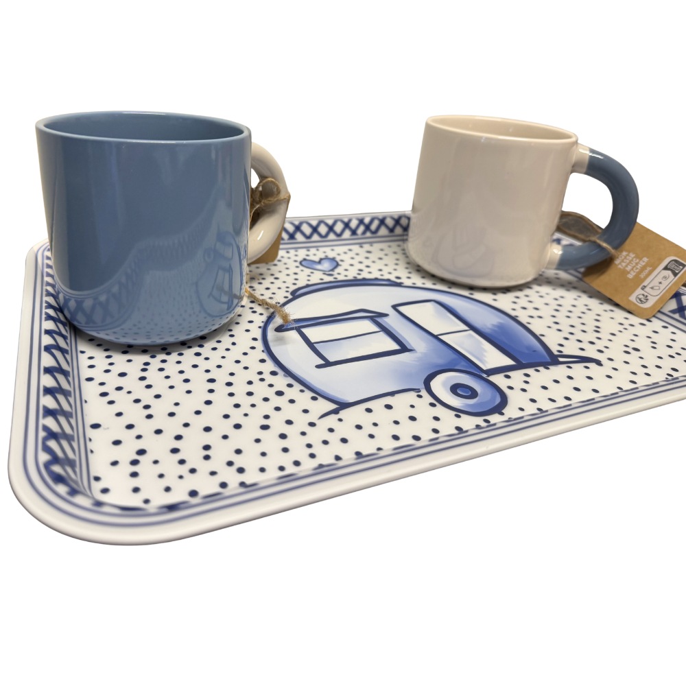 Een fijne mok voor je eerste kop koffie in de ochtend of een ontspannen theemoment onder de luifel. Deze aardewerken mok in duotoon wit heeft een rustige, frisse uitstraling en ligt prettig in de hand. Ideaal voor kampeerders die iets anders willen dan de emaille mokken uit de SVR Collectie. De combinatie van het witte aardewerk met blauw hengsel zorgt voor een mooie, zachte look die perfect aansluit bij de SVR collectie. Combineer ‘m bijvoorbeeld met het bijpassende dienblad en maak je koffiemoment helemaal compleet.