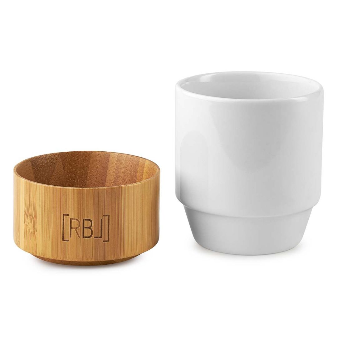 Deze stijlvolle koffiemok van Rebel Outdoor is van hoogwaardige kwaliteit en dat merk je zodra je hem vastpakt. De beker bestaat uit twee delen: een matwitte keramieken mok en een stijlvolle bamboe houder. Dankzij een subtiel ingebouwd magneetje klikken de twee onderdelen naadloos in elkaar. Handig: je kunt de keramieken beker ook los gebruiken. Zet hem neer als koffiemok of gebruik de bamboe houder apart, bijvoorbeeld als bakje voor nootjes of iets lekkers bij de borrel. Zo wordt één mok meteen multifunctioneel.