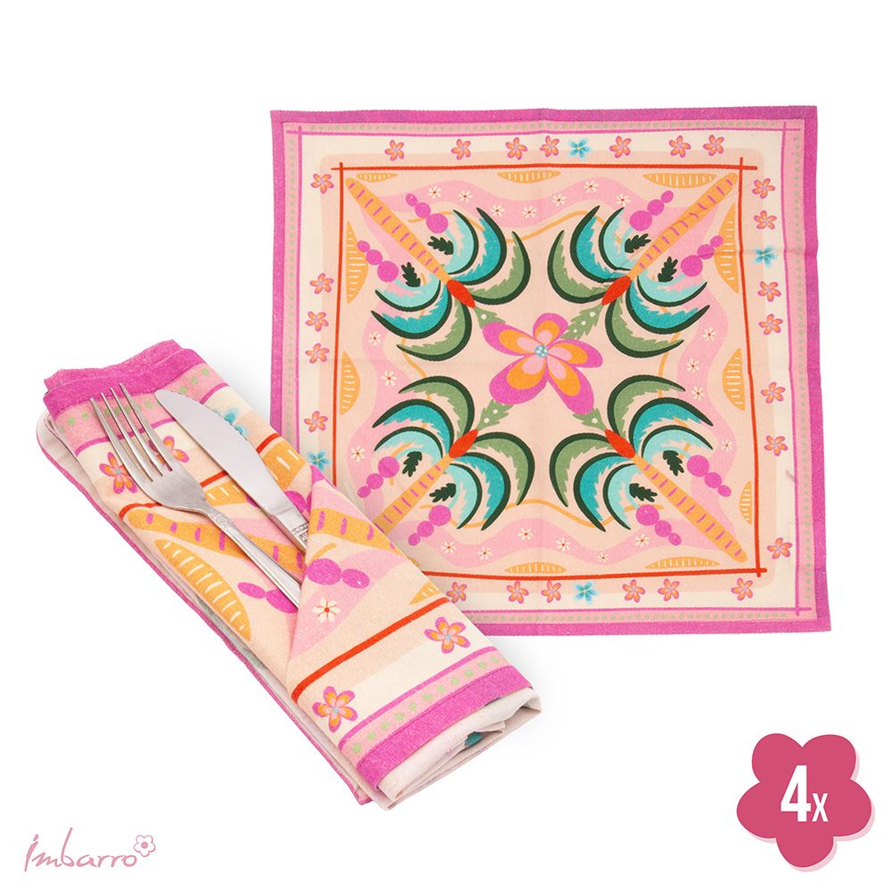 Met deze kleurrijke servetten van Imbarro geef je je tafel in één keer een frisse en vrolijke uitstraling. De Vista print zorgt voor een speels geheel en maakt elk eetmoment nét wat gezelliger, of je nu op de camping zit of thuis aan tafel.