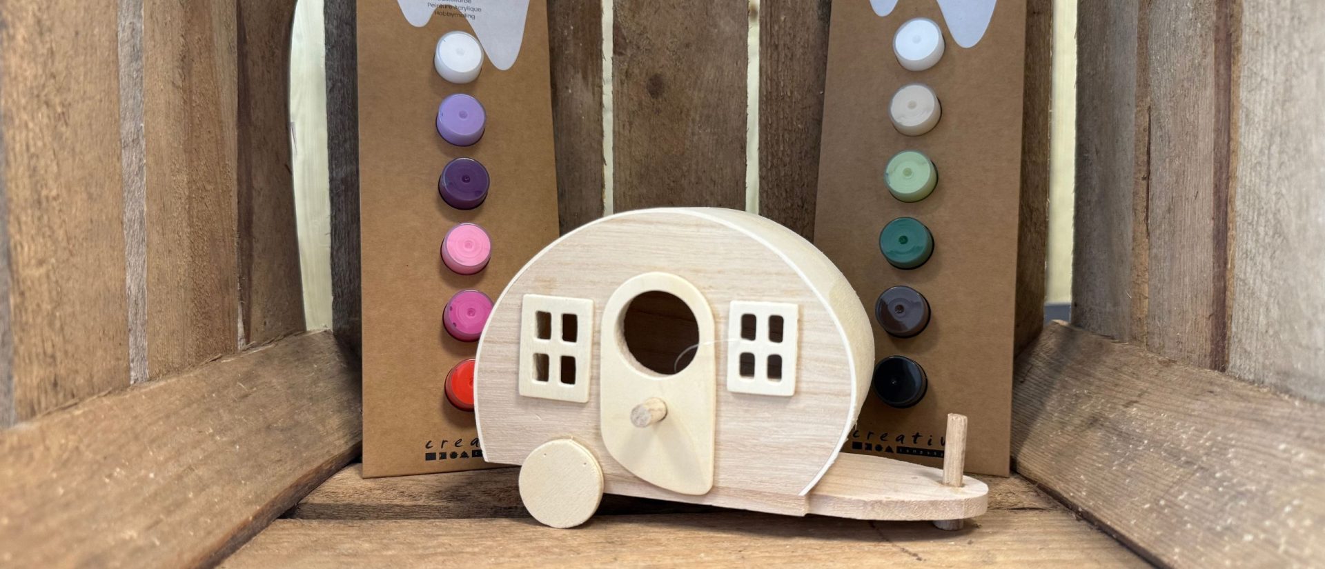 Met het meegeleverde verfsetje geef je het huisje in een handomdraai een persoonlijk tintje – van bonte kampeerstijl tot rustige natuurtinten, jij bepaalt de look. Een heerlijk DIY-project voor een regenachtige dag of een gezellige knutselmiddag samen.