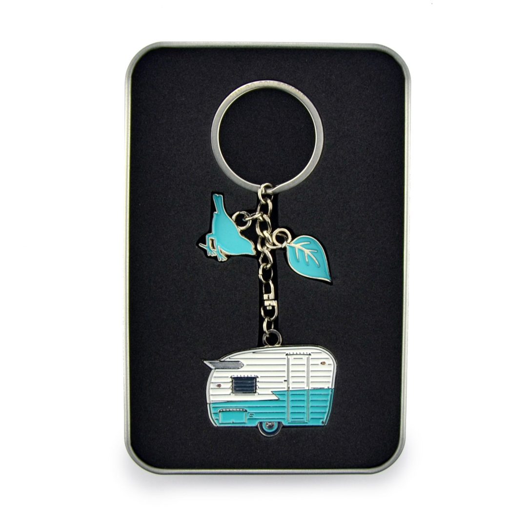 Deze sleutelhanger is het perfecte kado voor kampeerders die van vrolijk design en kwaliteit houden. De vrolijke retro caravan in teal/blauw uitvoering! Een stevige sleutelhanger van duurzaam metaal, ideaal voor aan de caravansleutels of gewoon aan de huissleutel om je elke dag even te herinneren aan het campingleven.