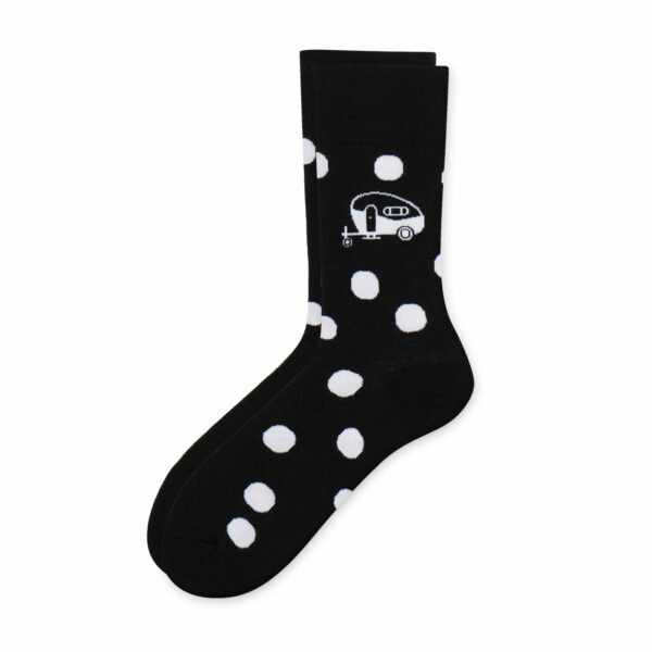 Show je sokken op de camping! Sokken voor échte blije kampeerders. Deze fijne sok met stippen en caravan is superleuk als kadootje, of natuurlijk lekker voor jezelf!