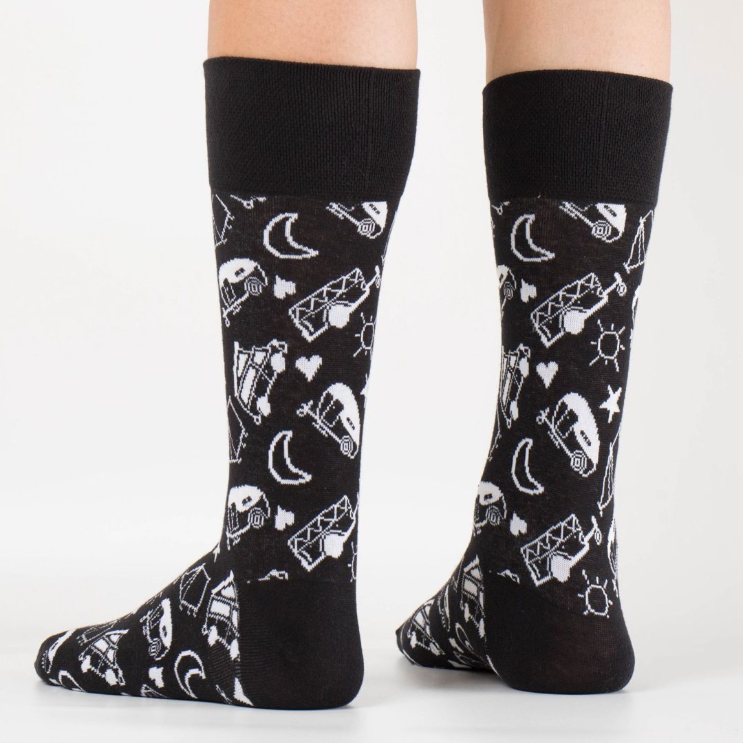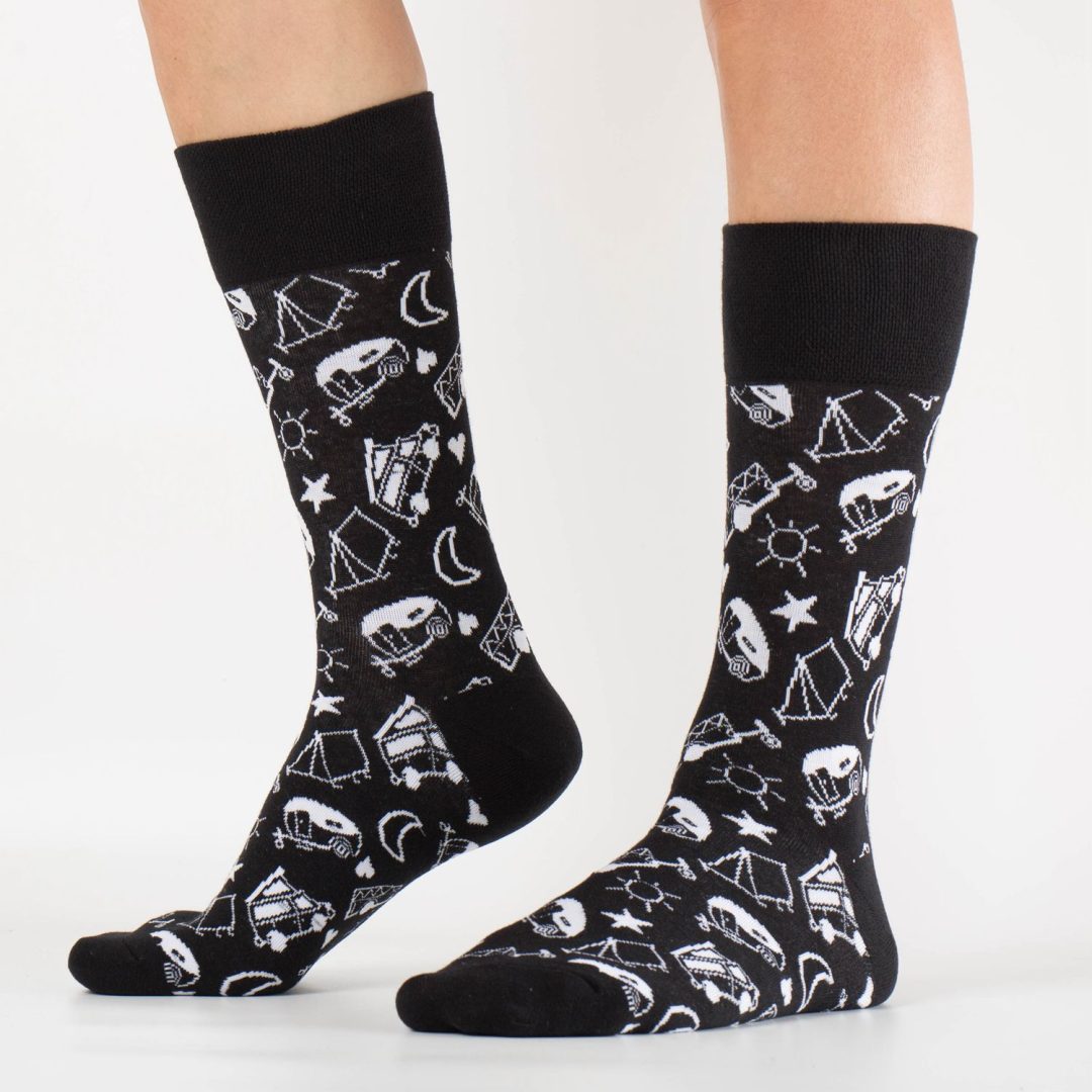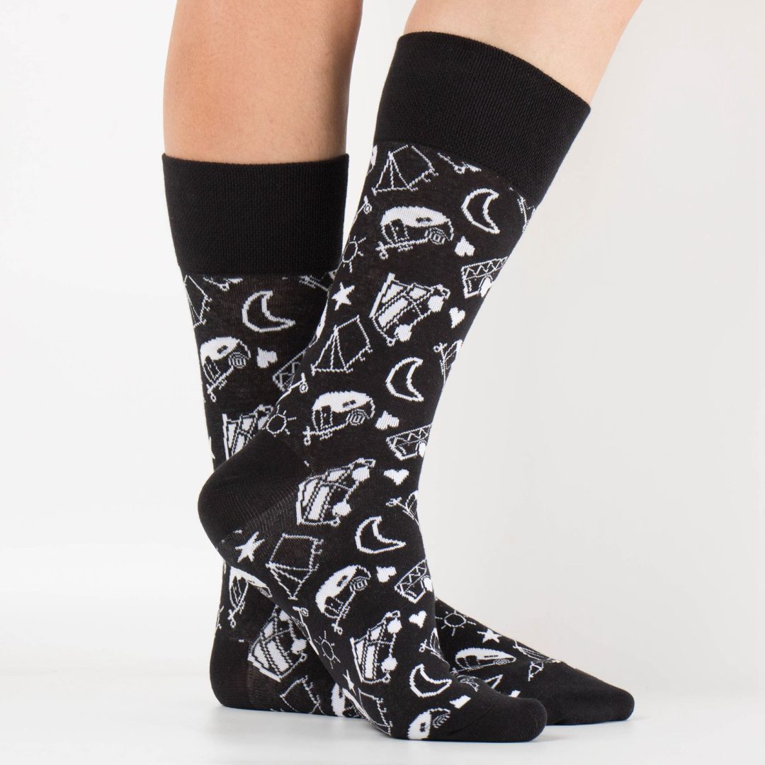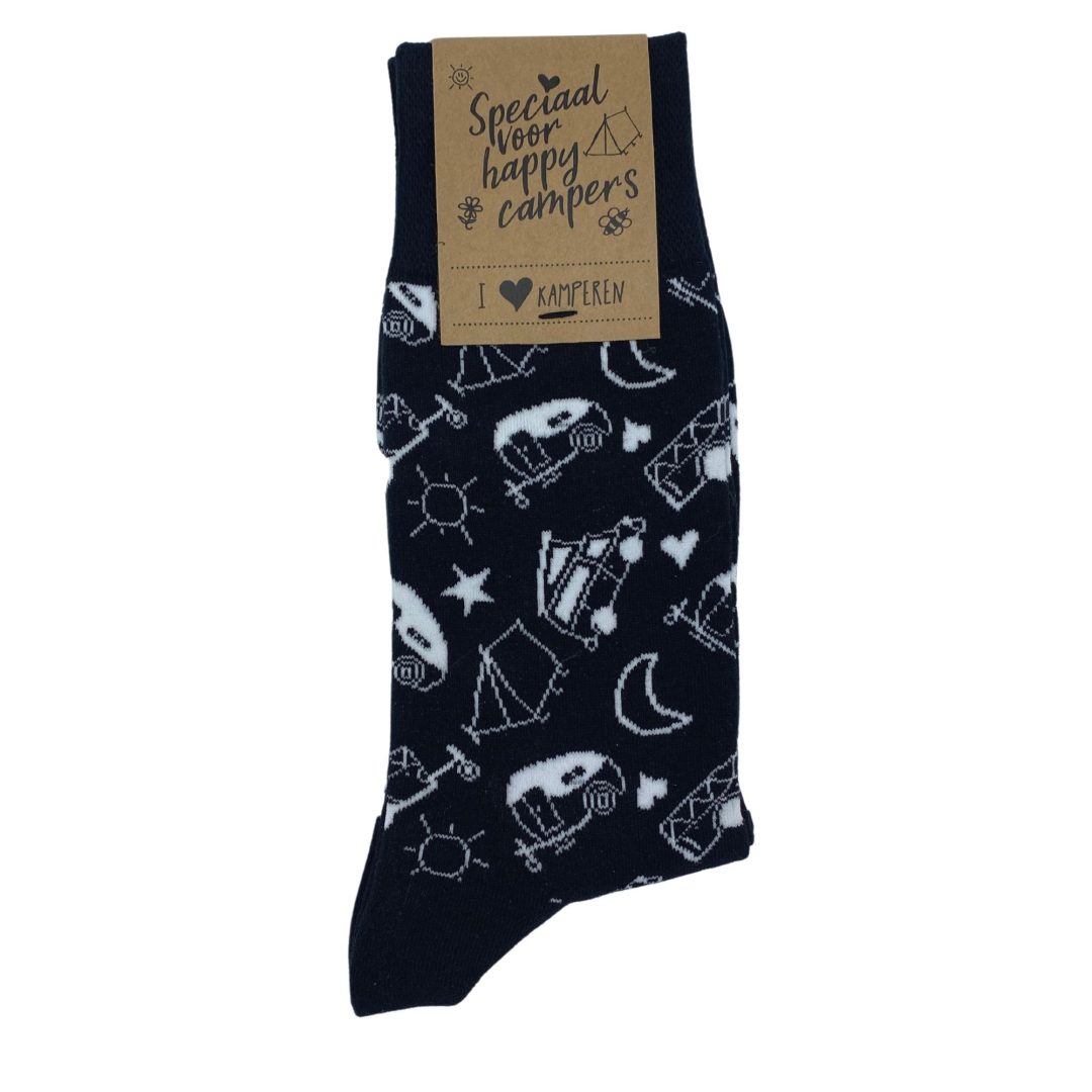 Mogen deze nou wel of niet in je slippers…? Sokken voor échte kampeerders! Met deze vrolijke sokken laat je zien hoeveel je van de camping houdt. Met een patroontje van vouwwagen, camper, caravan én tent zit er altijd iets voor je bij. Superleuk als kadootje, of natuurlijk lekker voor jezelf!