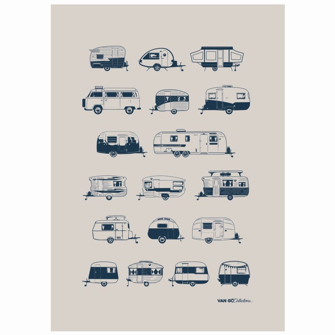 Eigenlijk heb je nooit genoeg theedoeken in de campingkeuken. En deze mag echt gezien worden. Een theedoek van hele mooie kwaliteit linnen, met een handgemaakte zeefdruk in de bekende print met retro caravans. Ze kunnen in de wasmachine worden gewassen, gaan lang mee, nemen veel vocht op én ze drogen snel. Zo wordt zelfs afwassen een feestje! Te mooi om te gebruiken? Dan leg je 'm toch op tafel als kleedje.....