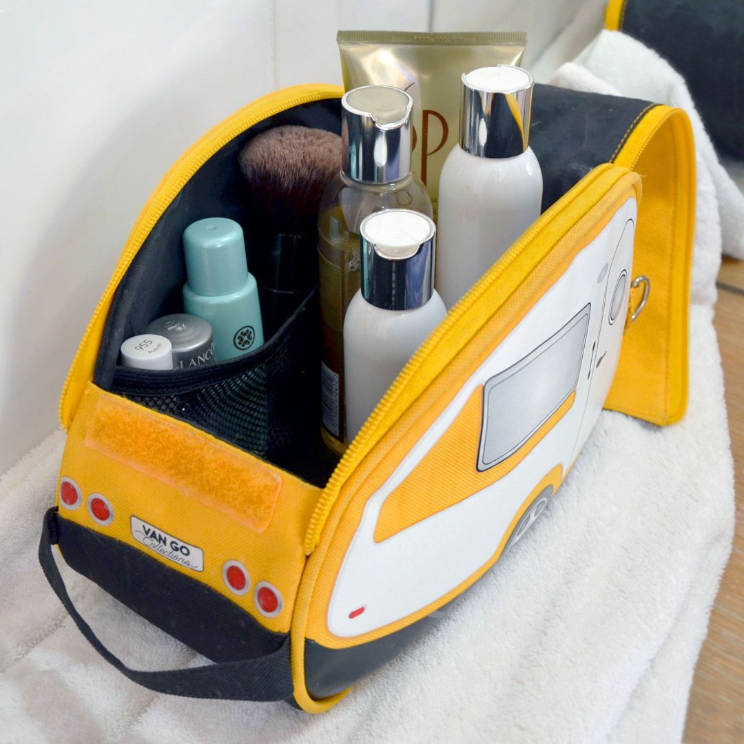 Deze toilettas is uniek en praktisch. Een gaaf design met retro caravan, uitgevoerd in stevig polyester. Deze mag met plezier mee als jij je tanden gaat poetsen! De toilettas heeft voldoende ruimte (24,5 cm x 10 cm x 16,5 cm) en het materiaal is van dusdanige kwaliteit (zoals we inmiddels van Van Go Collections weten en verwachten) dat je van deze tas lang plezier gaat hebben.